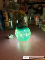 This resin dragon is made with glow in the dark media and fairy lights. The “crystal” ball glows after the lights are off. Comes on a base. This piece takes about 3 days to complete.